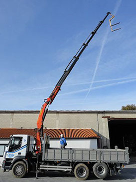 Nuestra flota de vehículos está compuesta por camiones entre 7,5 tn y 26 tn, equipados con volquete y grúas de 9,00, 11,00m y 17,00m. En caso de necesitar trabajos de descarga específicos, le ofrecemos la posibilidad de solicitar accesorios complementarios como el cubilote,.